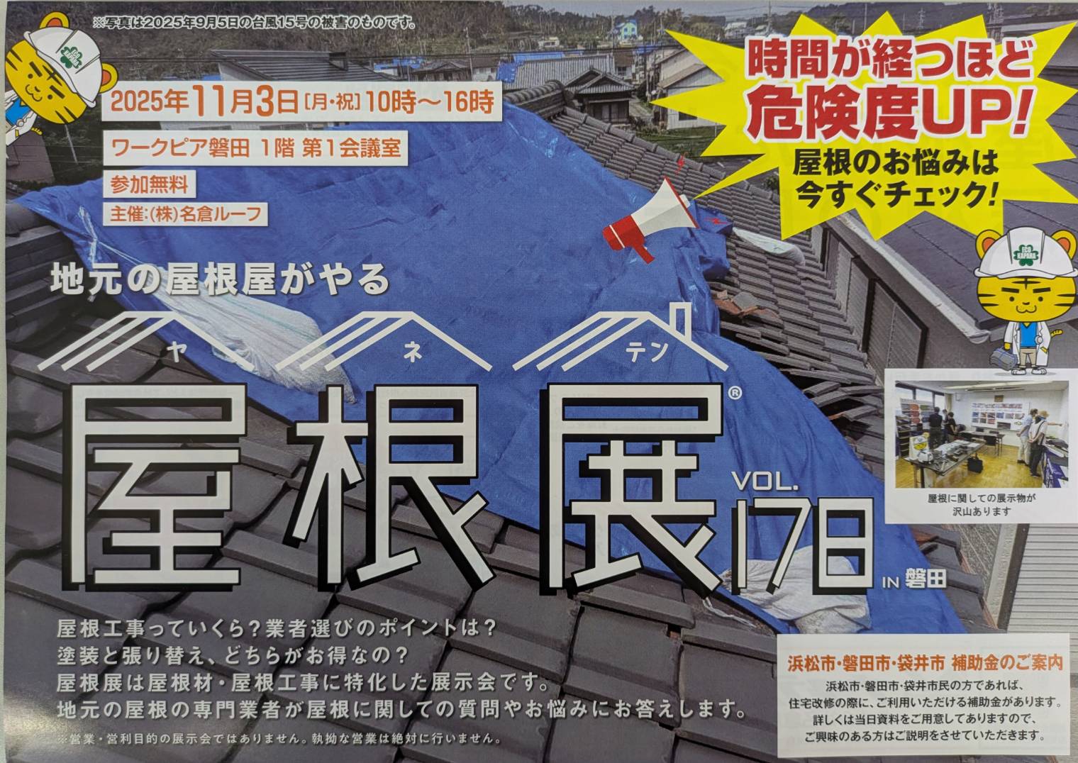 静岡県浜松市・磐田市 屋根リフォーム・雨漏り・防災専門店の名倉ルーフです!