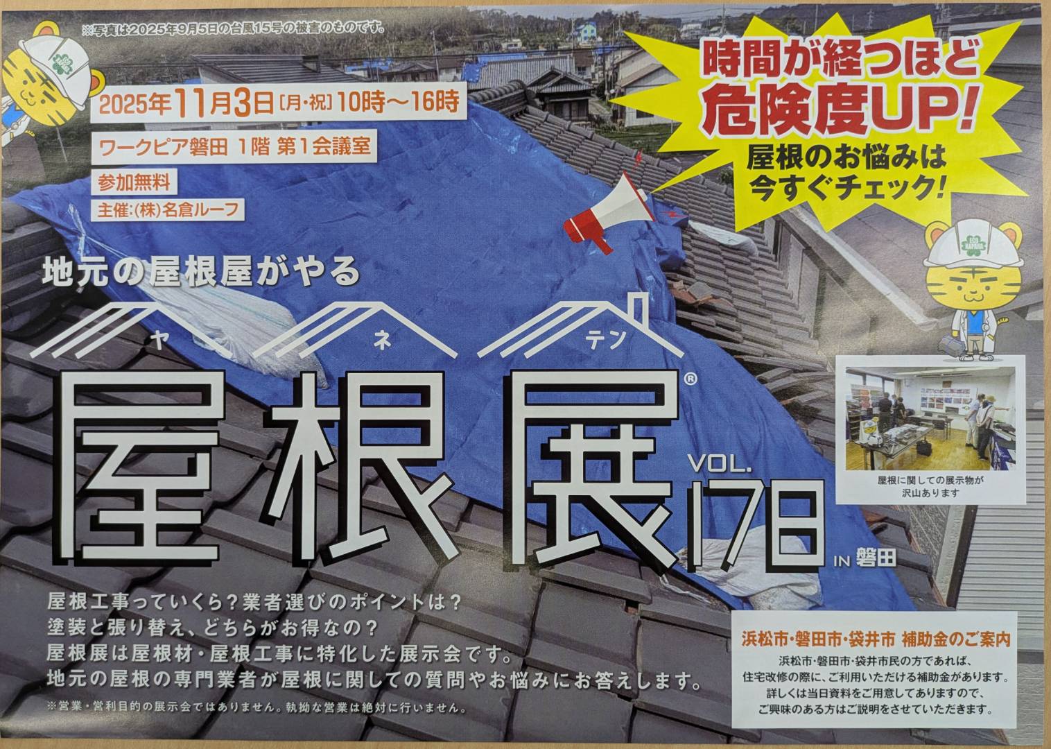 静岡県浜松市・磐田市 屋根リフォーム・雨漏り・防災専門店の名倉ルーフです!