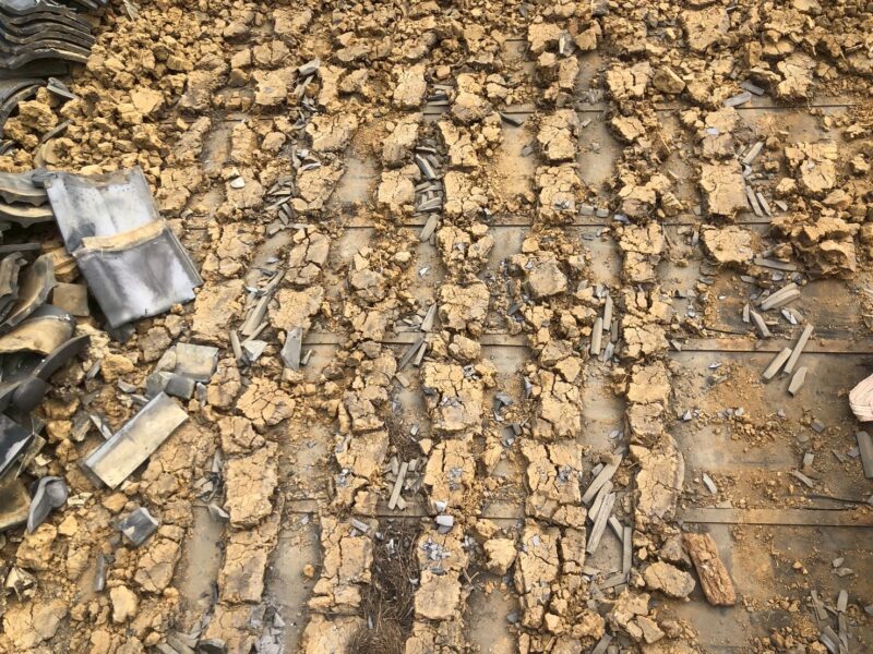 既存の日本瓦を外し、土台の土もすべて撤去します