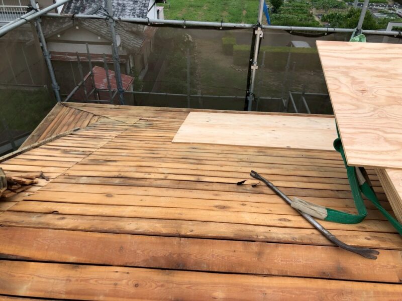 防水シートを止める効果と、新しい屋根材の取付足場になります