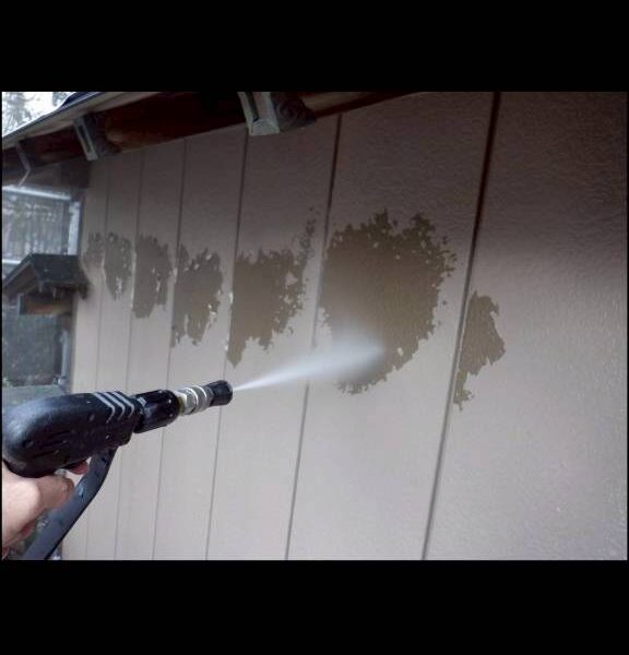 外壁塗装の前に、高圧洗浄機で外壁を洗います。