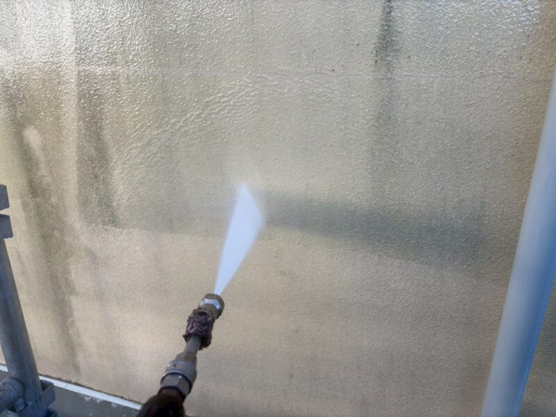 外壁も塗装前に全面を高圧洗浄機で洗浄します。