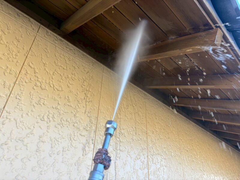 外壁塗装する前に、各所の汚れを落とすために高圧洗浄機で洗います。