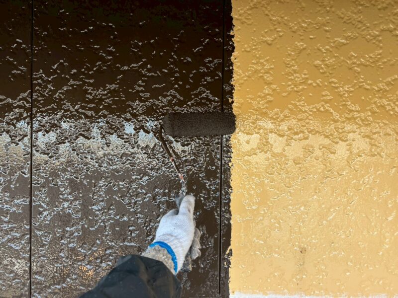中塗り(黄色)⇒上塗り(茶色)で仕上げます。